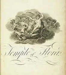 Title page to Temple of Flora (1812) by Robert John Thornton, calligraphy by Thomas Tomkins.[1]