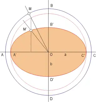In cartography, a Tissot's indicatrix (Tissot indicatrix, Tissot's ellipse, Tissot ellipse, ellipse of distortion) (plural: "Tissot's indicatrices") is a mathematical contrivance presented by French mathematician Nicolas Auguste Tissot in 1859 and 1871 in order to characterize local distortions due to map projection. It is the geometry that results from projecting a circle of infinitesimal radius from a curved geometric model, such as a globe, onto a map. Tissot proved that the resulting diagram is an ellipse whose axes indicate the two principal directions along which scale is maximal and minimal at that point on the map.