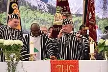 The black-and-white color of the necklaces worn by the traditional rulers has been chosen to match the robes.