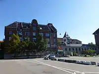 Stellings's former administration building and a former factory building are located on the east side of the southern portion of the square (Valgaardsvej). The adjacent Nordisk Kulsyrefabrik (Nordic Carbonic Acid Factory) with its condensator tower is from 1896.[3] The buildings now house Valby Cultural Centre (Valby Kulturhus).