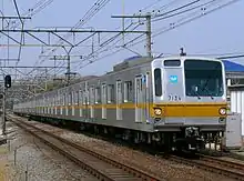 The Tokyo Metro 7000 series (東京メトロ7000系, Tōkyō Metoro 7000-kei) is an electric multiple unit (EMU) train type operated by the Tokyo subway operator Tokyo Metro in Tokyo, Japan, between 1974 and 2022, and by KAI Commuter in Jakarta, Indonesia, since 2010. The design is based on the earlier Tokyo Metro 6000 series trains used on the Tokyo Metro Chiyoda Line.
