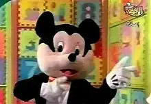 Farfour (Arabic: فرفور; also rendered as Farfur), a Mickey Mouse-like mouse,[11] is a costumed character with a high-pitched voice who co-hosted Tomorrow's Pioneers with Saraa. His name comes from a diminutive of fa'r which means "mouse" in Arabic.[12]