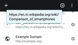 On mobile operating systems, a tooltip is displayed upon long-pressing—i.e., tapping and holding—an element.[1] Some smartphones have alternative input methods such as a stylus, which can show tooltips when hovering above the screen.