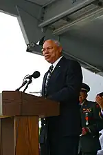 Colin Powell speaks at the Town of Tonawanda Veterans Memorial dedication ceremony, August 18, 2009.