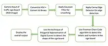 There are diverse algorithms for traffic-sign recognition. Common ones are those based on the shape of the sign board. Typical sign board shapes like hexagons, circles, and rectangles define different types of signs, which can be used for classification. Other major algorithms for character recognition includes Haar-like features, Freeman Chain code, AdaBoost detection and deep learning neural networks methods. Haar-like features can be used to create cascaded classifiers which can then help detect the sign board characters.