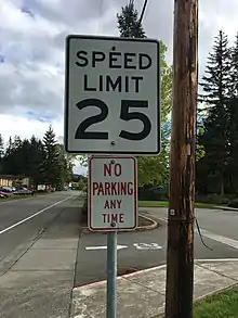 A speed limit sign in the United States