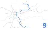In addition to the ordinary lines, there are two 'fast tram lines' that run at up to 5 minute intervals on the fast tram tracks: