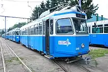 In nearest past many Tatra T4 trams were in use; now most of them are rebuilt into service trams for different purposes. GothaT57 tram is still kept.