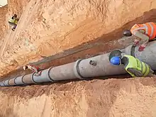 In 2004 Nigeria had 105 kilometers of pipelines for condensates, 1,896 kilometers for natural gas, 3,638 kilometers for oil, and 3,626 kilometers for refined products.[9] Various pipeline projects are planned to expand the domestic distribution of natural gas and to export natural gas to Benin, Ghana, Togo through the West African Gas Pipeline, and, potentially, even to Algeria (where Mediterranean export terminals are located) by proposed Trans-Saharan gas pipeline. Energy pipelines are subject to sabotage by militant groups or siphoning by thieves.[7]
