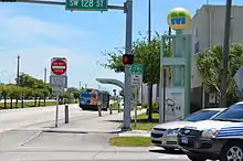 The Greater Miami area,[lower-alpha 1] composed of the three counties of Miami-Dade, Broward, and Palm Beach, also known collectively as South Florida, is home to a wide variety of public and private transportation systems. These include heavy rail mass transit (Metrorail), commuter rail (Tri-Rail), automated guideway transit (Metromover), highways, two major airports (Miami International Airport (MIA) and Fort Lauderdale–Hollywood International Airport (FLL)) and seaports (Port of Miami and Port Everglades), as well as three county-wide bus networks (Miami-Dade Metrobus, Broward County Transit (BCT), and Palm Tran), which cover the entire urbanized area of South Florida. Census and ridership data show that Miami has the highest public transportation usage of any city in Florida, as about 17% of Miamians use public transportation on a regular basis, compared to about 4% of commuters in the South Florida metropolitan area.[4] The majority of public transportation in Miami is operated by Miami-Dade Transit (MDT), which is currently the largest transit system in Florida and was the 14th largest transit system in the United States in 2011.[5]