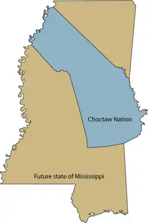![]() The approximate area that the treaty defined shaded in blue in relation to the future U.S. state of Mississippi | |