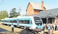 In March 2023, Trenes Argentinos announced the return of passenger services to Mendoza Province,[30] which had been interrupted since 1993 during the Carlos Menem presidency.[31] As the former Mendoza railway station had been converted into a tram stop and added to the Metrotranvía network, the terminus was set in Palmira, distant 5 km from the city of Mendoza.[30] A test ride was run in March, nevertheless it was severely criticized due to the excessive journey time (27 hours) alleging that in the 1960s the travel took only 13 hours.[32][31] After a delay that took more than two months,[33][34] the service (that had terminus in Justo Daract, San Luis Province) was finally restablished to reach Palmira in June 2023.[35]