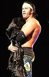 Roppongi Vice's farewell match took place on September 16 at Destruction in Hiroshima, where they defeated Bullet Club's Chase Owens and Yujiro Takahashi.[80] This led to Beretta's first singles match as a heavyweight on September 24 at Destruction in Kobe, where he defeated Takahashi.[81] On November 5 at Power Struggle, Beretta unsuccessfully challenged Kenny Omega for the IWGP United States Heavyweight Championship.[82] At the end of the year, Beretta teamed with the debuting Chuckie T. in the 2017 World Tag League, where they finished with a record of four wins and three losses, failing to advance to the finals.[83] On January 4, 2018, Beretta, Tomohiro Ishii and Toru Yano won a five-team gauntlet match at Wrestle Kingdom 12 in Tokyo Dome to become the new NEVER Openweight 6-Man Tag Team Champions.[84] They dropped the title the following day to Bullet Club (in the form of Bad Luck Fale, Tama Tonga and Tanga Loa), who were the previous champions.