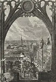 The third and present Trinity Church building was built in 1846 and designed by architect Richard Upjohn in the Gothic Revival style.[26][27] In 1976, the United States Department of the Interior designated Trinity Church a National Historic Landmark because of its architectural significance and its place within the history of New York City.[3][28][29]