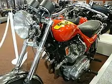 The Triumph X-75 Hurricane was a 'factory special' motorcycle designed by fairing specialist Craig Vetter.[1] The X-75 had swooping glassfibre bodywork, a three US-gallon petrol tank, lowered gearing and a distinctive triple exhaust on the right-hand side. The motorcycle is credited with creating a new class of motorcycle, the cruiser.[2]