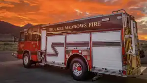 The Truckee Meadows Fire Protection District of Washoe County Nevada covers the eastern slopes of the Sierra Nevada Mountains in Western Nevada. The county spans an area of nearly 6,600 square miles in the northwest section of the state bordering California and Oregon.[1] TMFPD was originally founded in 1972 and operated independently until 2001. Washoe County contracted the City of Reno Fire Dept. to operate TMFPD engines until 2012. Early in 2012 the agreement with the City of Reno was terminated and TMFPD was stood back up and operated independently again. The Truckee Meadows Fire Protection District operates a fire apparatus fleet of 10 engines, 1 ladder company, 11 brush trucks, 1 rescue squad, 1 ambulance, 1 hazardous material unit, various support units, 2 technical rescue support units, 9 water tenders, and 2 water rescue entry vehicles The District's primary areas of responsibility include rural and suburban communities outside the City of Reno. Truckee Meadows Fire Protection District responded to 10,581 calls for service with a 2017/2018 budget of $27,932,275.