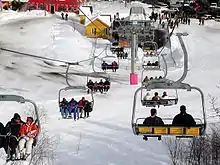 All lifts are manufactured and operated by Leitner Group. The current structure replaced existing soviet era lifts, mostly following their path. There were initially three consecutive lifts stretching from the foot of the mountain (1,969 m above sea level) up till the mountain peak (2,819 m), with the first and second lifts ending at 2,234 m and 2,465 m above sea level respectively. In 2006, a fourth lift was added, stretching from the end of the first stage towards an opposite hilltop, thus adding two trails, both leading down to the foot of the slopes.[1]
