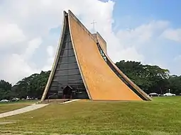 On the grounds, the Luce Memorial Chapel (designed by architects Chen Chi-kwan and I. M. Pei) is a local landmark. The logo of the university contains a cross in reference to the statement in the founding documents that it was "founded in the love of Jesus," and the three linked circles refer to the Holy Trinity as well as the motto, "Truth, Faith, Deeds".[1] The university shares its name with Tokai University in Japan. The two universities have since entered a partnership agreement.