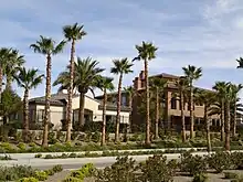 The project was originally proposed by developer Jim Rhodes in 1995, under the name Palm City.[1][2] It was initially planned as an age-restricted community with 2,600 homes. As years went by, the unbuilt project was redesigned as an all-ages community, and was downsized to 2,200 homes.[1] Plans for a three-acre (1.2-hectare) commercial building site were also scrapped. Added to the plans were a 10-acre (4.0-hectare) elementary school, two parks, and trails and bike lanes.[1][3] Palm City was meant as an affordable version of Rhodes Ranch, another community in the Las Vegas Valley. Like Rhodes Ranch, it would also include a golf course designed by Ted Robinson.[4] Rhodes received approval from the city of Henderson in 1998,[1][3] and he began grading the property that year.[5] The site included the Stewart gravel pit, which had been abandoned since the 1980s.[5][2][6] The former gravel mine accounted for a majority of the future community's land.[7]