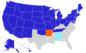 The amendment was rejected by Arkansas on January 24, 1961.[12] Nine states took no action on the amendment: Florida, Kentucky, Mississippi, Georgia, South Carolina, Louisiana, Texas, North Carolina, and Virginia.