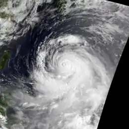 Across Okinawa, 32 households lost power. A total of 1,752 ha (4,330 acres) crops were damaged, amounting to ¥106 million.[28] In Ehime Prefecture, 13,316 homes lost electricity. A total of 18 homes were damaged, and roads were damaged in 121 locations. Twenty-two flights were delayed in the prefecture due to strong winds. Damage was estimated at ¥1.56 billion.[17] In Miyazaki Prefecture, 406 homes were destroyed and 321 others were damaged. Three people were killed in the prefecture, including two Ebino – one due to a landslide and another due to a house collapsing. Thirteen people were wounded, including eleven in the northern portion of the prefecture.[29] In the city of Kagoshima, 100 households lost power. Five people perished in the backyard of a private house in Tarumizu. Throughout Kagoshima Prefecture, 325 homes were destroyed, 23 homes were damaged, and 14 individuals were wounded. Damage there amounted to ¥2.35 billion, mostly from the fishing and agriculture industries.[18] An Indonesian sailor from the Opo Soly was reported missing after his freighter tried to dock offshore Kagoshima Prefecture, although 13 others on board were rescued safely.[30] Overall, five were presumed dead in Kagoshima Prefecture after a landslide buried all five family members under mud.[31] Nearly 11,000 households were left without power in Amakusa. Crop damage in Kumamoto Prefecture was estimated at ¥2.67 billion.[19] Eight people suffered injuries in Nagasaki Prefecture and damage there was estimated at ¥2.94 billion.[20]