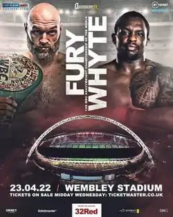 Tyson Fury vs Dillian Whyte was a professional boxing event that featured heavyweight professional boxing match contested between WBC and The Ring heavyweight champion, Tyson Fury, and WBC interim heavyweight champion, Dillian Whyte. The bout took place on Sunday 23 April 2022 at Wembley Stadium in London, England.[1] Tyson Fury won the bout by knockout in round 6.[2]