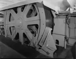 In 1952 Neptune was assigned to Project Caesar, the unclassified name for the installation phase of SOSUS. The system's mission was declassified in 1991.[9] On 17 February 1953 the ship was named Neptune and withdrawn from the reserve fleet.[6] The ship then went to the Bethlehem Steel Co. in Baltimore, Maryland for a number of modifications: e.g., electric cable machinery (in place of steam), precision navigation instrumentation, and a helicopter platform over the fantail.[5] Cable drums 15 ft (4.6 m) in diameter and bow sheaves spanning 12 ft (3.7 m) were among the more visible modifications.[10] On 1 June 1953 the ship was commissioned USS Neptune (ARC-2).[5]