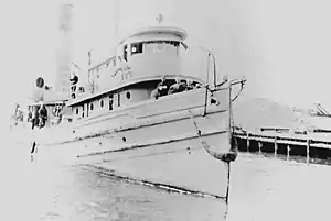 At some point Margaret, converted to diesel, was sold to the Reedville Oil and Guano Company.[6] The registers for 1928 and 1930 show the vessel operating for the Douglas Company of Reedville, Virginia engaged in fishing.[10][11][note 2] On 28 December 1942 Margaret was chartered for $850 a month by the U.S. Coast Guard, converted at a cost of $115,200 and commissioned as the emergency manned (EM) USCGC EM Margaret (WYP 323). The vessel did patrol duty based from Cape May, New Jersey until decommissioned 7 June 1943 and returned to the owner 24 June 1943.[2][3]