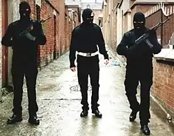 In 1974, hardliners staged a coup and took over the Brigade Staff.[50] This resulted in a sharp increase in sectarian killings and internecine feuding, both with the UDA and within the UVF itself.[50] Some of the new Brigade Staff members bore nicknames such as "Big Dog" and "Smudger".[51] Beginning in 1975, recruitment to the UVF, which until then had been solely by invitation, was now left to the discretion of local units.[52]