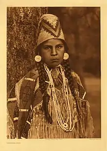 Linguistically, the Umatilla language or Imatalamłaamí Sɨ́nwit is part of the Sahaptin division of the Penutian language family — closely related to other peoples of today's Eastern Oregon, Eastern Washington, and the Idaho panhandle.[1] These included the Nez Percé (Šíwaniš - "Stranger"), Cayuse (Wáylatpu / Wáylatpuuma - "Ryegrass People, i.e. Cayuse People"), Walla Walla (Walawalałáma - "People of Walula region along Walla Walla River"), Palouse (Paluuspamá - "People of Palus") and the Yakima (Mamačatłáma - "Yakama People").[1] These peoples were ravaged by smallpox and other infectious diseases contracted from European colonists during the first half of the 19th century.[1]