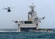 The amphibious assault techniques developed for World War II evolved, with the addition of air assault and maneuver warfare doctrine, into the current "Operational Maneuver from the Sea" doctrine of power projection from the seas.[11] The Marines are credited with the development of helicopter insertion doctrine and were the earliest in the American military to widely adopt maneuver-warfare principles, which emphasize low-level initiative and flexible execution. In light of recent warfare that has strayed from the Corps's traditional missions,[32] the Marines have renewed an emphasis on amphibious capabilities.[33]