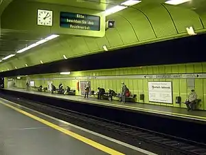 Universität/Markt is a stop on the Bonn Stadtbahn in Bonn, Germany. It is located directly beneath the Hofgarten and runs parallel to the main building of the University of Bonn.