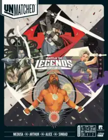 Unmatched is a tabletop game published by Restoration Games and formally Mondo Tees in which two to four players use a combination of miniatures and cards to compete in a skirmish-style battle. Playable characters are drawn from mythology and pop-culture, with fighters ranging from Robin Hood to Bigfoot, Buffy the Vampire Slayer, Sherlock Holmes, and others. The game was originally released in 2019.