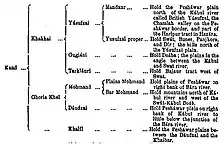 The Utmanzai hold the extreme east of the right bank of the River Indus, also settling in a small area in the south of the Gadoon valley, and early in the 17th century were called across the Indus by the Gujjars , Tareen Afghans and Shalmani (Dardic Tajik) of Hazara and Tarbella as allies against the Tanoli and appropriated the Gandgarh tract from Tarbela to the southern border of Hazara.The Allies of Tareen Afghans are Utmanzai (Akazai) , the Allies of Shalmani (Dardic Tajik) are Utmanzai (Kannazai), and the Allies of Gujjars were Utmanzai (Alizai). The Utmanzai Tribesmen successfully expelled Tanoli's.