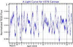 V376 Carinae is a binary star[3] system in the southern constellation of Carina. It has the Bayer designation b1 Carinae; V376 Carinae is the variable star designation. The system is visible to the naked eye as a faint point of light with a combined apparent magnitude of +4.69.[3] The distance to this system from the Sun is approximately 650 light years based on parallax.[2] It is drifting further away with a radial velocity of +27 km/s.[6]