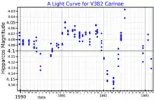 A light curve for V382 Carinae, plotted from Hipparcos data[10]