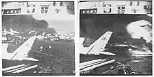 From 17 to 19 September 1985, VA-46 along with other units of Carrier Air Wing 1 (CVW-1) were the first to conduct flight operations from a carrier operating inside a fjord. USS America operated in Vestfjord, Norway during this evolution.[2] The next year on 14 April 1986, as a response to terrorist actions, the squadron took part in strikes against targets in Libya. During that action, VA-46 provided air-to-surface Shrike and Harm missile strikes against Libyan radar missile sites.[2] Beginning on 17 January 1991, the squadron took part in Operation Desert Storm, the combat operations to remove Iraqi forces from Kuwait. The squadron's A-7E Corsair IIs participated in the first combat strike against Iraqi targets in Baghdad, and VA-46 and VA-72 made the last combat sorties of the A-7 Corsair II during Desert Storm flying from the Red Sea.[6] Upon their return from the Persian Gulf they were decommissioned on 30 June 1991. VA-46 was the last United States Navy squadron to fly the A-7 Corsair II.[7]