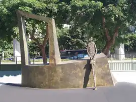 Then, and it is probably the most important, a new theme emerged in the artist's work, the theme of "monumental fragility" - an expression that she would employ often in her public presentations. The characters are not anymore only these figures that we can lay down on a table, but large, lanky and faceless characters, sometimes perched on top of stairs, sometimes strolling across frames made of solids and voids or hanging as if suspended in mid-air. "How to preserve the lightness and the poetry in a sculpture several meters high?", she wondered during a public presentation in November 2015.[9] For the artist, the answer laid in the "understanding of what constitutes the strength and the specificity of the artwork, in order to stress the strong points. This requests extreme rigor, an answer to new requirements". VAL described this period as a "formidable time of maturation".
