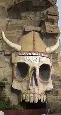 Valhalla is an indoor log flume water ride located at Blackpool Pleasure Beach in Lancashire, England. Opened on 14 June 2000 at a cost of £15 million, it is one of the longest indoor dark rides in the world, with a ride time of over four minutes.[1][2] Valhalla features three drops and uses special effects which simulate fire, water, and snow.[3]