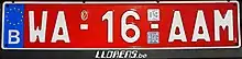On 11 January 2011, amid the high separatism in Belgium, leader of the Flemish populist and nationalist Vlaams Belang party Filip Dewinter arrived in front of the Flemish Parliament sticking a 'VL' (for Vlaanderen, name of Flanders) badge over the existing 'B' (for Belgium) on the plates of his vehicle, and posing with VL plates in front of cameras.[6][7] He encouraged other Flemish people and his party members to get VL plates. The VL plates were denounced by Dirk Van der Maelen of the Flemish Socialistische Partij Anders party, who said it violates Belgian law that state vehicles registered in the country must carry the 'B' country code. Drivers who violate the law may be liable for a €55 fine. Tanguy Veys of the Vlaams Belang protested (wrongly) that similar nationalist plates are legally used in European regions such as Scotland, Brittany, Wales, England and Catalonia, despite them not being sovereign states.[8] Later that year, the Vlaams Belang started selling self-made yellow numberplates for 13 euros, featuring the VL code and a REPUBLIEK VLAANDEREN ("Republic of Flanders") subtitle.[9]
