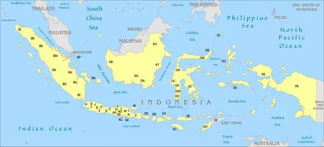 - 1 2 "License Plates of Indonesia". www.worldlicenseplates.com. Retrieved 5 August 2022.