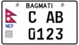 The plates have a strip on their left side, with the national flag of Nepal, as well as a blue colored text NEP.