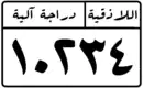 - The left-most section: At the top the name of the province in Arabic and below that the registration number (a maximum of 6 digits) in Arabic numerals. The provinces are as follows: