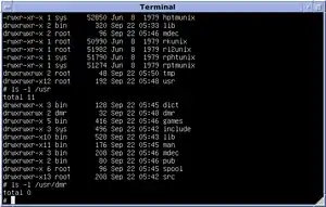 | 6th Edition | May 1975 | Includes ratfor, bc, chgrp, cron, newgrp, ptrace(2), tbl, units, and wall.[3] First version widely available outside of Bell Laboratories, licensed to commercial users,[1] and to be ported to non-PDP hardware (Interdata 7/32). May 1977 saw the release of MINI-UNIX, a "cut down" v6 for the low-end PDP-11/10. |