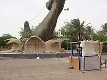 The Victory Arch (Arabic: قوس النصر, romanized: Qaws an-Naṣr),[1][2] officially known as the Swords of Qādisīyah, and popularly called the Hands of Victory or the Crossed Swords, are a pair of triumphal arches in central Baghdad, Iraq. Each arch consists of a pair of outstretched hands holding crossed swords. The two arches mark the two entrances to Grand Festivities Square and the parade ground constructed to commemorate the Iran–Iraq War, started and led by Iraq's then-president Saddam Hussein. The arches were opened to the public on 8 August 1989. It is one of Baghdad's visitor attractions and near to the Monument to the Unknown Soldier.