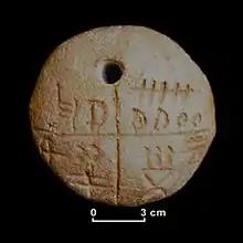 The Gradeshnitsa tablets are clay artefacts with incised marks. They were unearthed in 1969 near the village of Gradeshnitsa in the Vratsa Province of north-western Bulgaria. The tablets are dated to the 4th millennium BC and are currently preserved in the History Museum of Vratsa.[12]