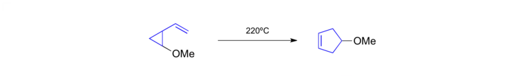 Methoxy-substituted vinylcyclopropanes show significantly faster reaction rates allowing the rearrangement to take place at 220 °C.[30]