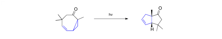 Vinylcyclopropane rearrangements can also be mediated photochemically.[33][34] In a particularly intriguing example he was able to show that vinylcyclopropanes embedded within a cyclooctane core can be converted to the corresponding [5-5]-fused ring systems.
