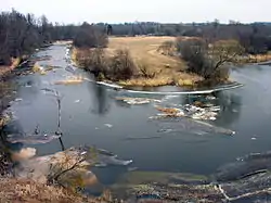 The Virvytė River or Virvyčia River (Samogitian: Virvītė) is a river in Samogitia (Šilalė, Telšiai and Mažeikiai districts), northwestern Lithuania. It is a left tributary of the Venta River. Virvytė begins in Žemaičiai Highlands, 3 km north from Laukuva town. It flows north passing Lakes Paršežeris and Lūkstas, Varniai city, Lake Biržulis, Tryškiai town. Virvytė flows into Venta near Gyvoliai village. Virvytė's main tributaries are Juodupis, Būgenis, Trimsėdis, Upyna, Tryškys.