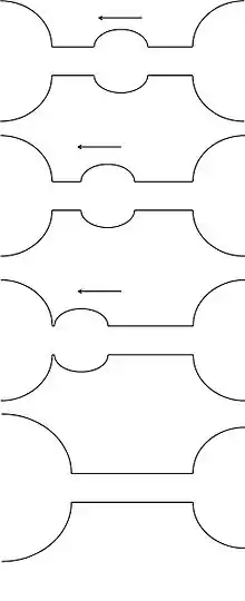 In drop draining a small bead between two beads gets smaller in size and the fluid particle moves towards the adjacent beads. The smaller bead drains out as shown in the figure.